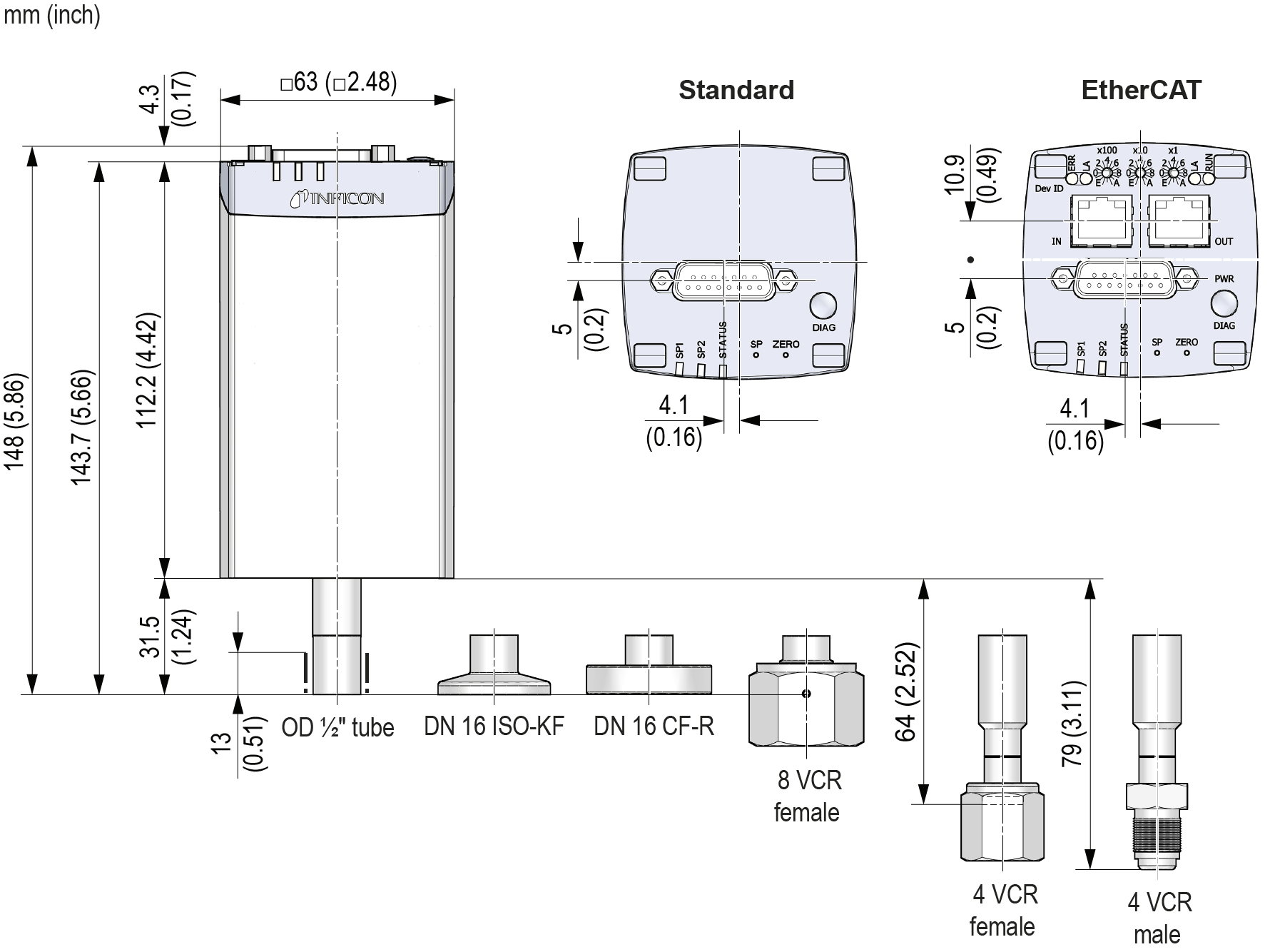 Los dispositivos electrónicos avanzados ofrecen una amplia variedad de acondicionamiento de señales configurable para todas las aplicaciones y una interfaz de bus de campo EtherCATTM opcional. El innovador concepto de calentamiento permite obtener una superficie fría al tacto y ahorrar un valioso espacio entre las herramientas. El indicador Edge de INFICON es el instrumento de medición de vacío más pequeño de su clase.